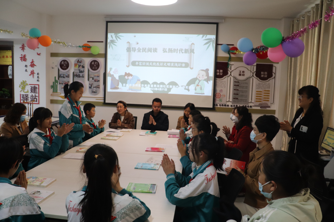 4月21日下午,武威市凉州区东关街富民花园社区文明实践站联合发展街小学开展“倡导全民阅读,弘扬时代新风”丰富活跃文化生活文明实践活动。