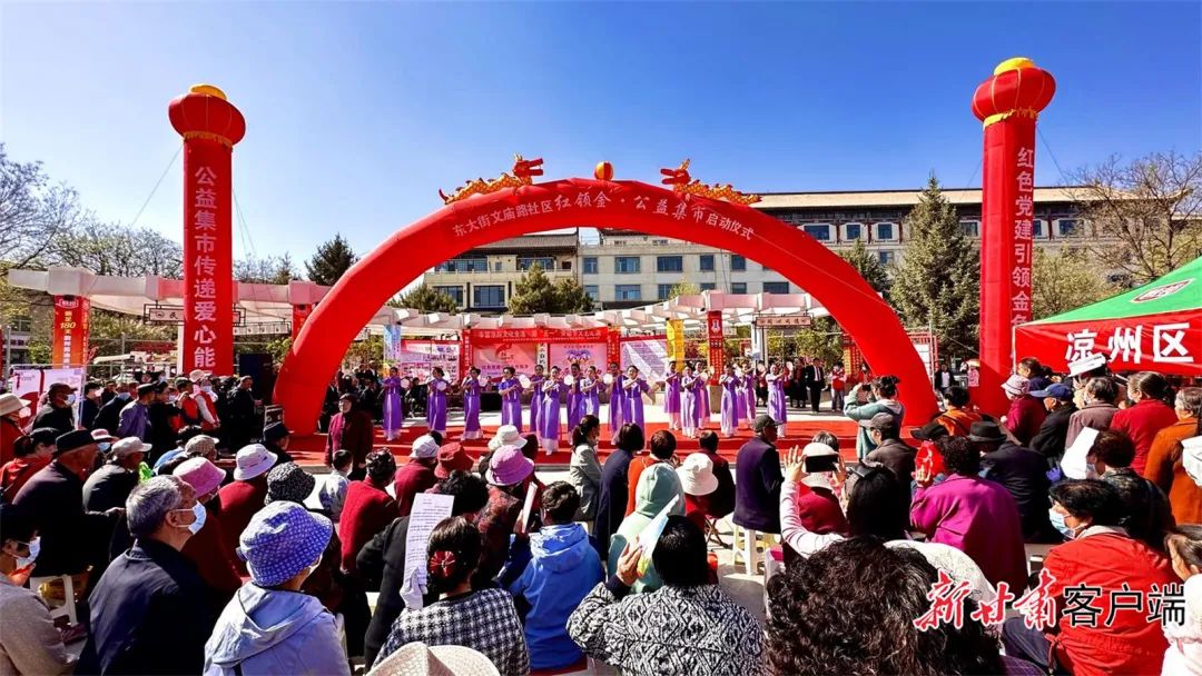 新甘肃客户端武威讯 近日,以“红色党建引领金色服务”为主题的凉州区东大街文庙路社区公益集市热闹开市。