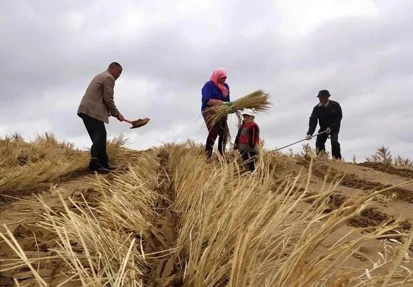 在茫茫沙漠中植树不是一件容易事,前一天挖好的树坑,一夜之间就被风沙填平了,有时一场大风就吹走了苦干几个月的成果。最初的两年时间里,树倒了再栽,苗枯了再补,不知反复了多少回,父子俩终于摸索出一套压沙植树的好办法——秋天先压沙,用麦草和玉米秸秆在沙漠上压出一米见方的草方格;春天再植树,在草方格里面栽植梭梭、花棒等沙生苗木。