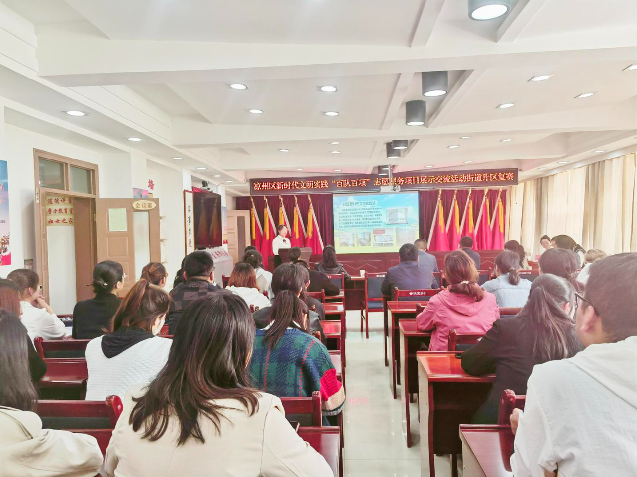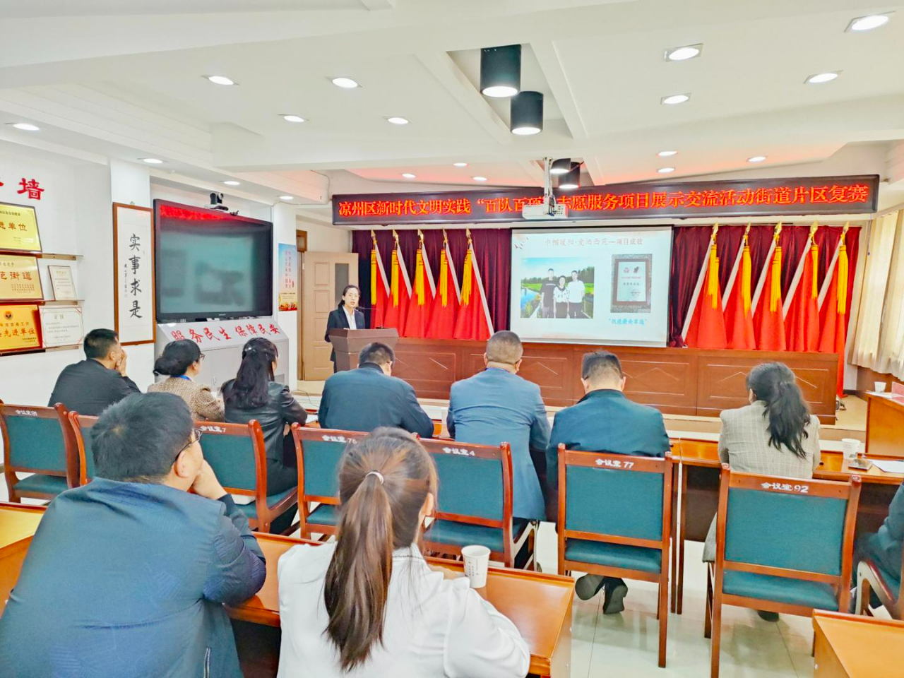 日前,凉州区新时代文明实践百队百项志愿服务项目展示交流活动城区片区复赛有序进行,活动现场,各志愿服务项目讲解人以现场解说、图文展示等形式,分享了特色项目的志愿者组织、项目内容、项目成效和推广计划,让大家更加生动直观地感受到了志愿服务的魅力,有效扩大了文明实践的影响力,领唱了文明实践的主旋律。