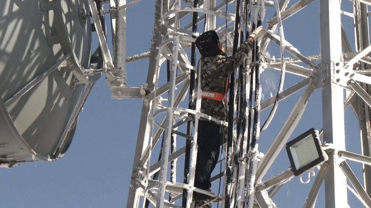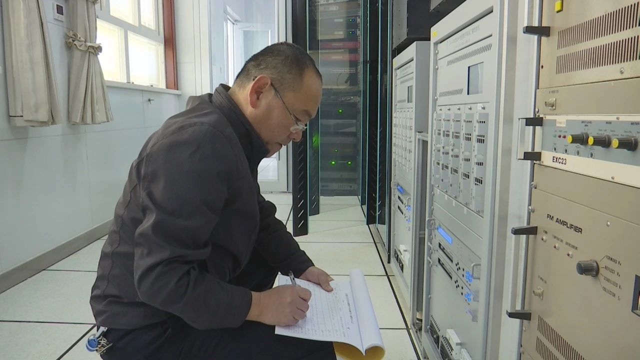 毛毛山微波台技术服务室主任 李国成:我们每天都要观察机房的设备运行情况,早晨还要爬上铁塔检查维修发射天线,维护高压线路。有一次几个乡镇信号断了,我们上去抢修,风雪特别大,抢修完下来时候,手都冻变形了,这种事经常发生。