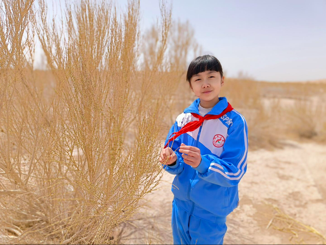 小小年纪敢走风沙口,稚嫩小手能扶梭梭苗。在民勤县活跃着一支植树防沙的志愿者队伍,每年都要组织开展近3个月的植树防沙志愿劳动,从小受父母治沙行动的影响,耳濡目染,马化清也成为志愿者队伍中的一员。