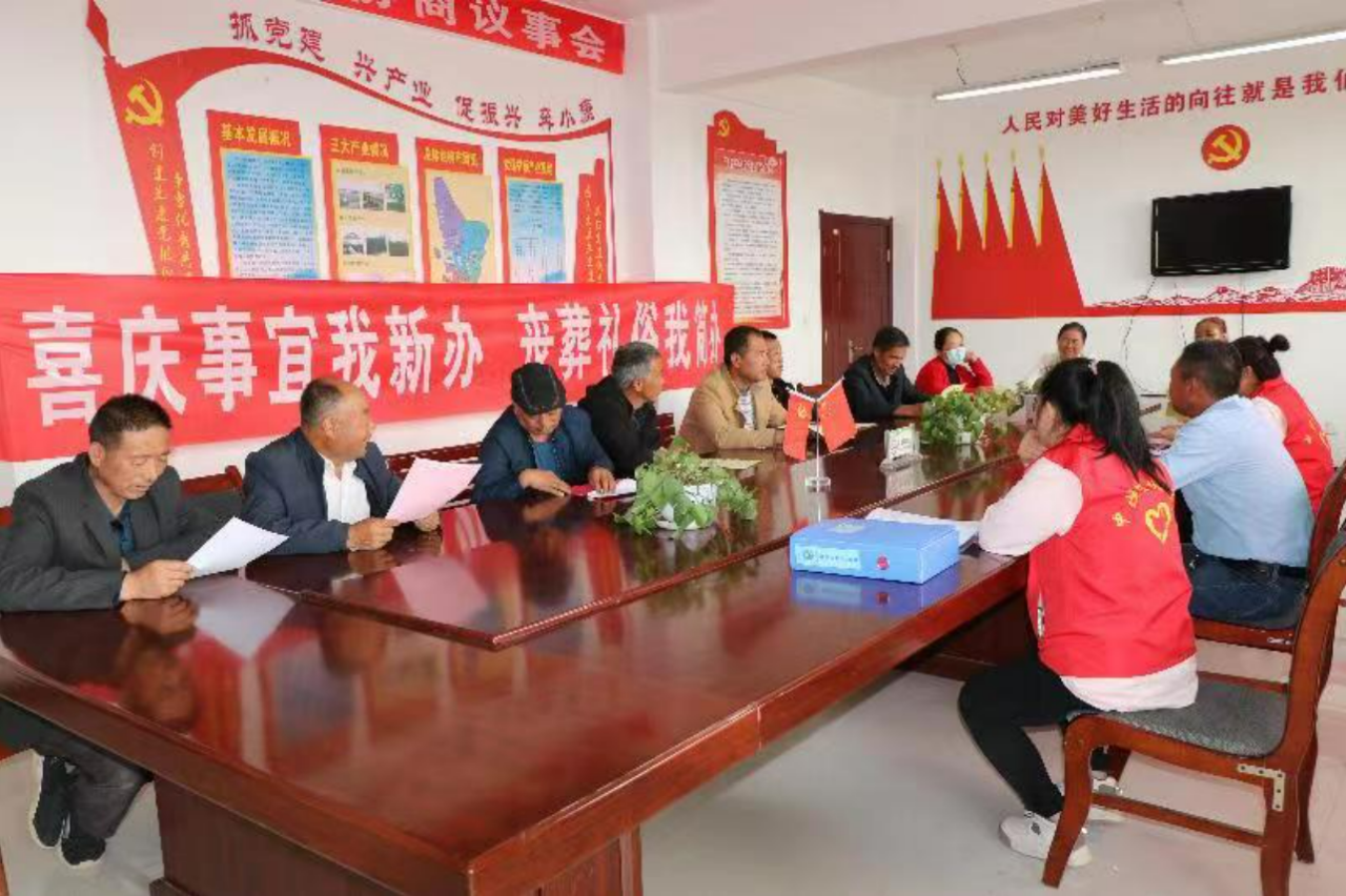 6月6日上午,凉州区清源镇中沙村红白理事会举行宣传活动,倡导居民自觉践行婚丧简办、文明节俭的生活方式,让文明新风在中沙村全面落地生根。