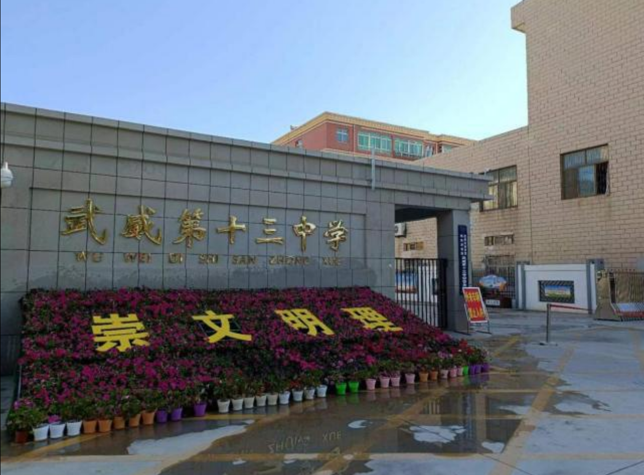 走进武威第十三中学,校园内绿树成荫,落英缤纷,漫步于校园,有老师勤教的身影,有学生朗朗的书声,更有师生问好的微笑……一股文明之风扑面而来。