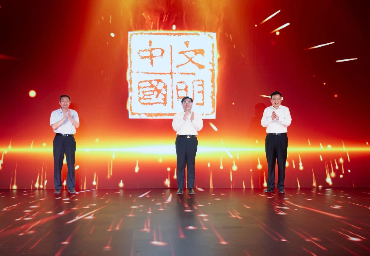 中央宣传部分管日常工作的副部长胡和平,新华社社长、党组书记傅华,中国文联党组成员、副主席诸迪共同为“文明中国”主题标识揭幕。新华网 王安 摄