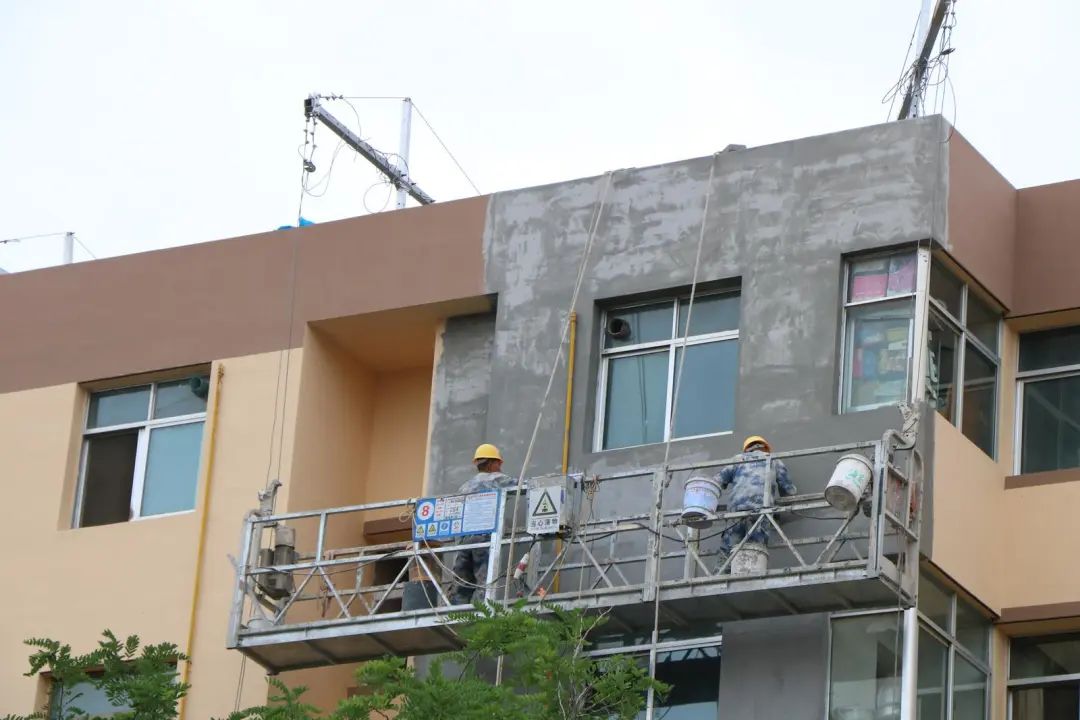 在火车站街道惠民社区皇苑小区,施工人员正在有5层楼高的升降机上作业。他们手脚麻利,给单薄的外墙“穿”上了厚厚的“外衣”,这个冬天居民不用担心受冻了。