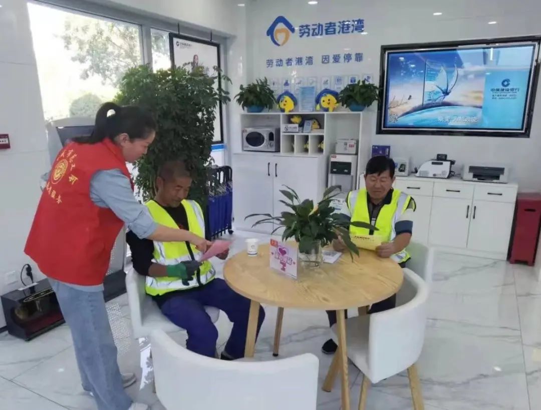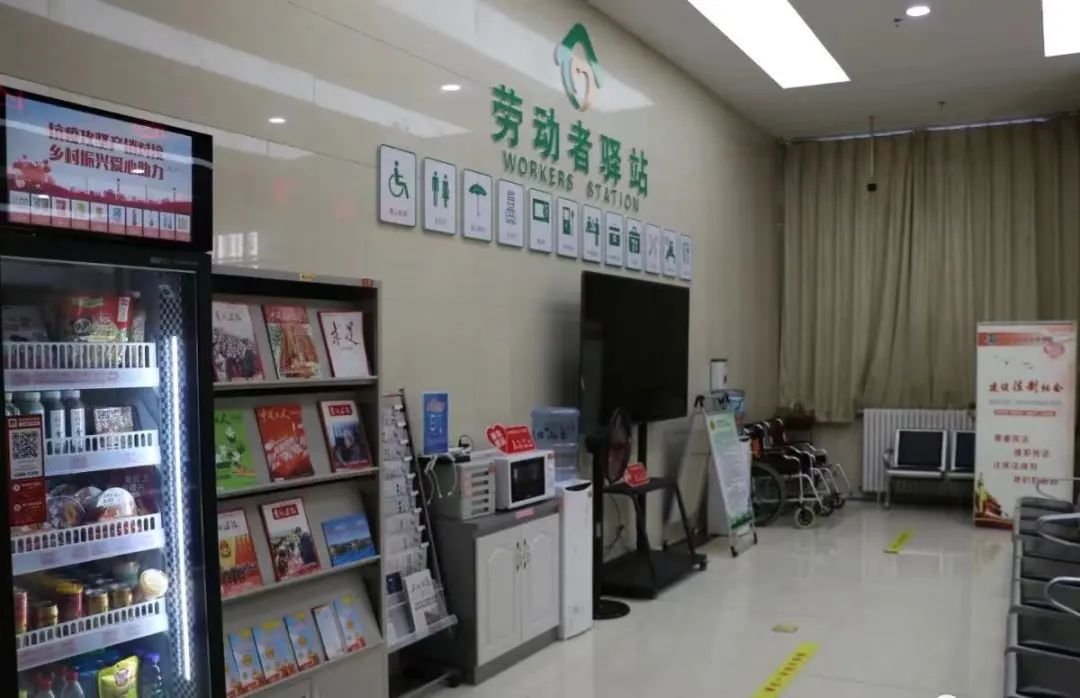 城市的繁荣美丽、市民生活的方便快捷离不开户外劳动者的辛勤付出。不论严寒酷暑,环卫工人、快递员、外卖小哥等户外工作者始终坚守着自己的岗位。为了给这些辛勤的工作者一个暂时休息的场所,我市设置了多处劳动者驿站,走进劳动者驿站,整齐的桌椅、明亮的环境、温馨的布置,墙体彩绘写着“点滴关爱、温暖常在”的温馨标语,报架上夹着报刊,柜子上摆着热水器、绿植、微波炉,墙上挂着电视机……就像一个温馨的大家庭。座椅、空调、保鲜柜、阅览桌、淋浴器、洗衣机、图书、充电装置等设施都很齐全,提供的“热可纳凉、渴可喝水、餐可加热、累可歇脚、急可如厕”等爱心服务,让城市在“爱心”的“映衬”下显得更加温暖。