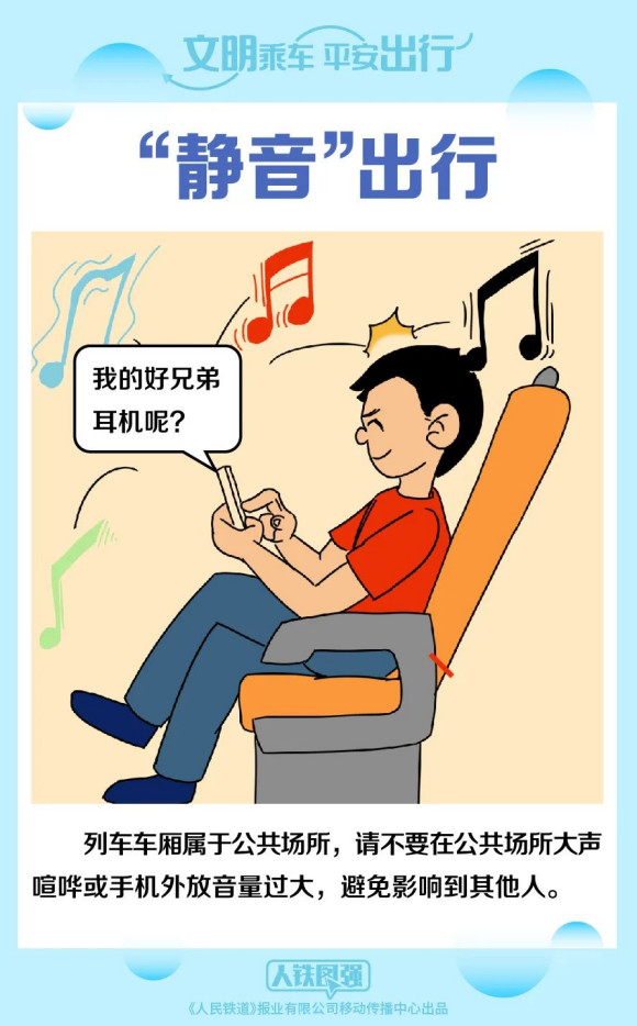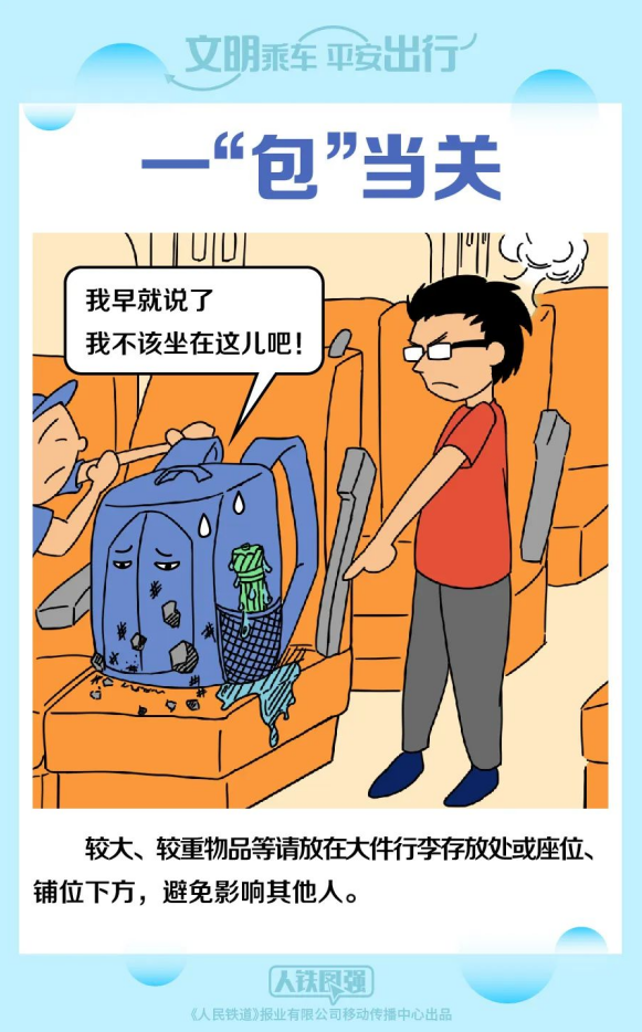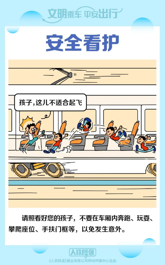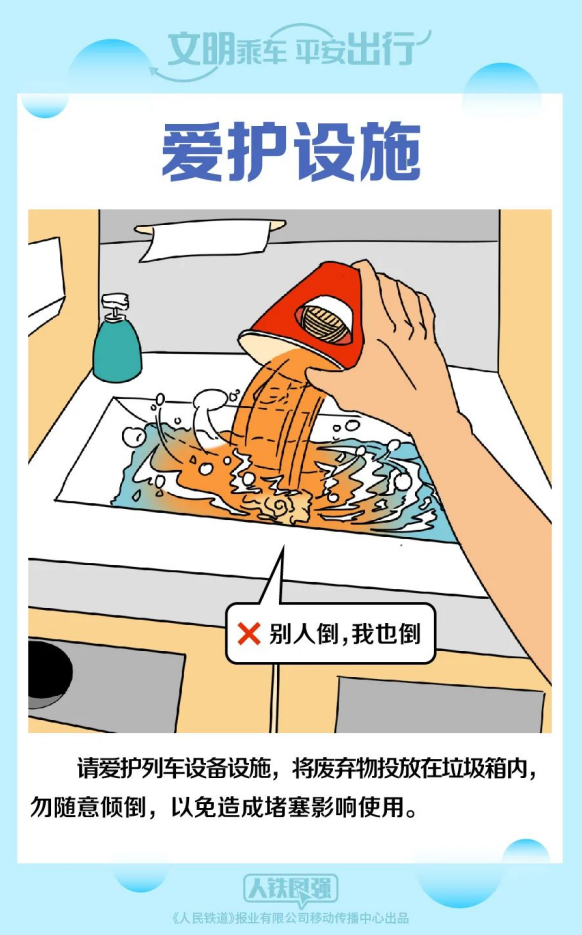 列车环境关系每一名旅客的出行体验,需要大家共同营造和维护。旅途中,有哪些需要格外注意的方面呢?