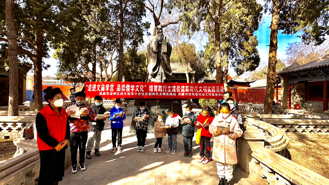 助推“橙色关爱”:扶贫济困生命线、暖心服务育“初心”。发挥新时代文明实践阵地优势,采取“党员+社工+志愿服务队+居民群众”模式,联合武威市欣雨星社会工作服务中心等专业机构持续实施“益童筑梦计划”,加强对困难儿童的思想道德教育和救助保护,组织开展学业辅导、特长教育、亲情连线等志愿服务。常态化为辖区困难群众开展上门走访、慰问帮扶、爱心义诊等活动,帮助居民解决日常生活中的实际困难,高标准实施“暖心工程”。