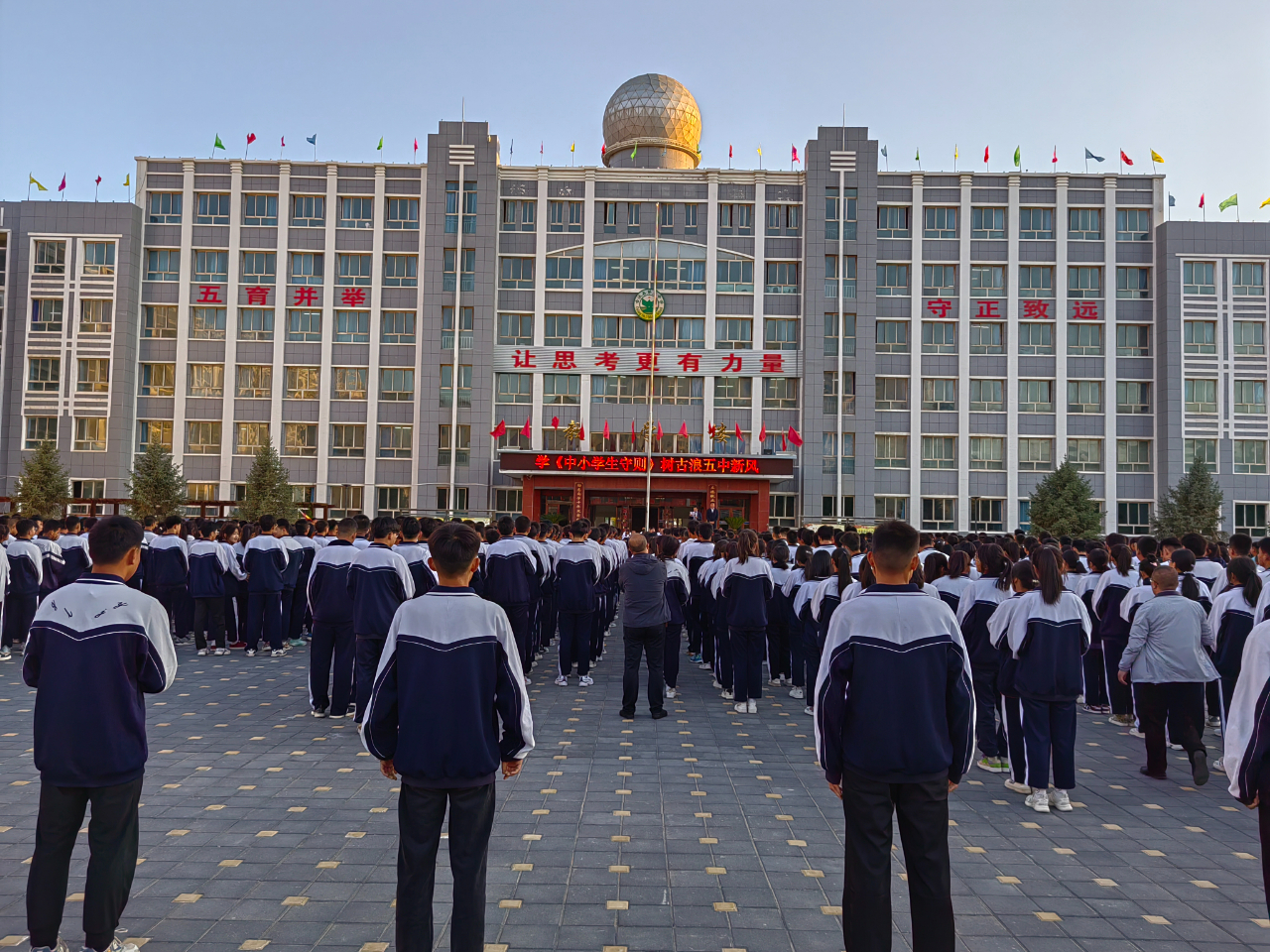 2023年8月28日古浪县第五中学升旗仪式活动中学习《中小学生守则》。