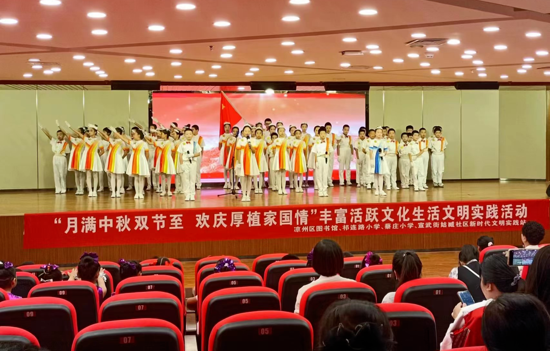 中秋,是阖家团圆的佳节;国庆,则是国家的庆典;今年中秋的满月,朗照着国庆,秋渐浓,月渐圆,家与国在这样美好的日子撞了个满怀,因为国安,所以家圆。自古家国情怀就是中华传统文化中不可或缺的重要组成部分,为进一步弘扬中华民族传统文化,庆祝伟大的祖国母亲74岁华诞,营造浓厚的中秋、国庆双节氛围,宣武街姑臧社区于9月22日联合凉州区图书馆、蔡庄小学、祁连路小学开展了“月满中秋双节至 欢庆厚植家国情”主题活动。
