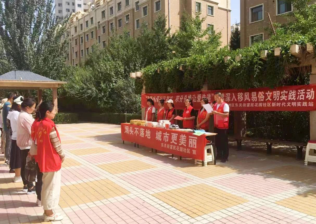 在凉州区东关街富民花园社区,一场“志愿有爱社区有礼,积分兑换让爱传递”文明实践活动正在开展。活动现场,志愿者向大家宣读了倡议书,倡导大家自觉养成良好生活习惯,不乱扔烟头垃圾,形成生态健康、绿色环保的文明意识。随后,辖区居民在工作人员的引导下,用捡拾来的烟头兑换了鸡蛋和纸巾、水杯等生活日用品。