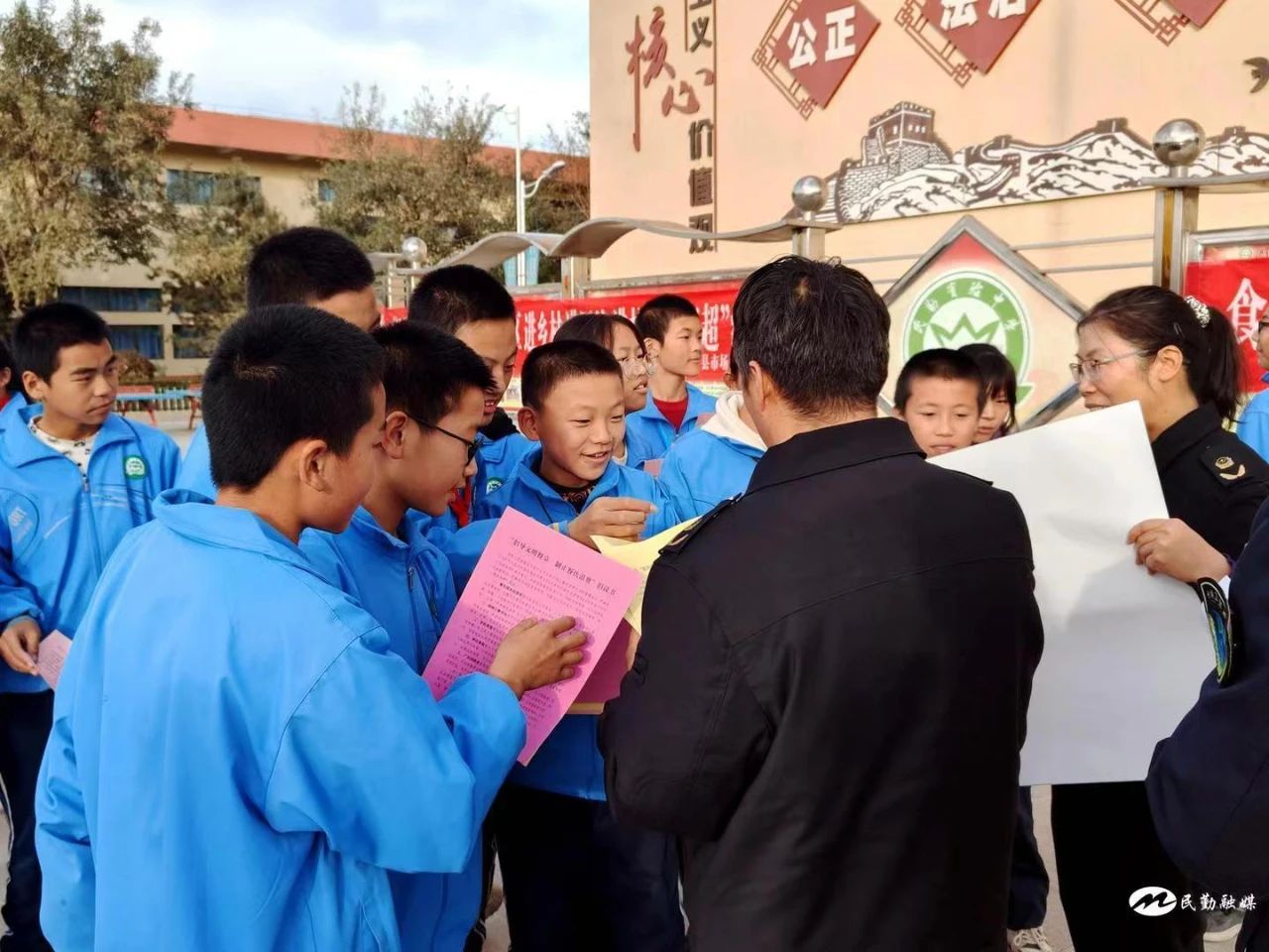 民勤县市场监管局工作人员通过悬挂横幅、发放“倡导文明餐桌 制止餐饮浪费”倡议书、现场解答咨询等多种形式,为同学们普及餐桌文明知识,推广餐桌文明礼仪,切实增强学生的公共卫生意识和文明用餐理念。