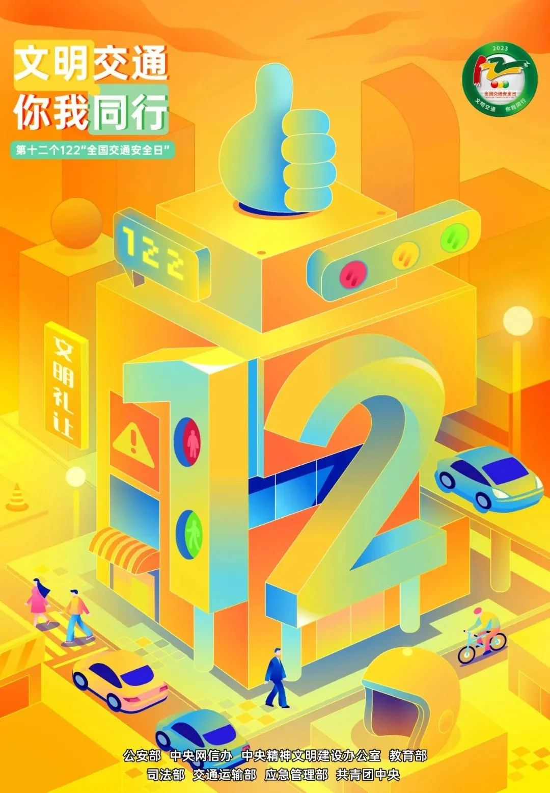 但是,还不够。文明交通越是深入人心,安全根基越要筑得更牢。为此,公安部、中央网信办、中央精神文明建设办公室、教育部、司法部、交通运输部、应急管理部、共青团中央等八部门在联合部署122“全国交通安全日”主题活动的同时,也聚焦“出行安全”下发了一批主题海报,提醒广大群众时刻牢记交通安全,文明出行!