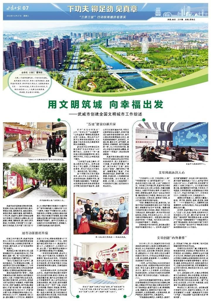 今天,《甘肃日报》整版报道武威!——用文明筑城 向幸福出发