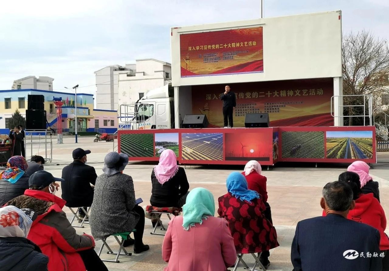 坚持以传播党的创新理论为首要任务,着眼推动习近平新时代中国特色社会主义思想深入人心、落地生根,民勤县充分发挥新时代文明实践中心思想引领、理论传播、凝聚群众的作用,创新宣讲方式,以“宣讲+文艺”形式,编排民勤曲子戏《二十大精神暖民心》、音乐快板《二十大精神宣传小分队进村庄》等节目,利用流动舞台车到镇村和街道社区巡回开展宣传宣讲。