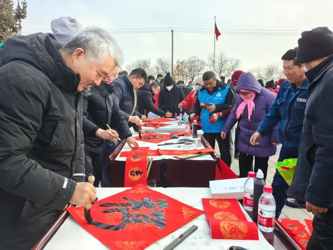 春临大地百花艳,节至人间万象新……在武威市文联的服务点位前,书法家们挥毫泼墨、笔走龙蛇,将新年的祝福化作一幅幅火红的对联,字里行间流溢着对新年的美好祝愿。“春节快到了,家里提前准备好春联,来年日子更红火!”接过书法家现场书写的福字和春联,黄羊镇上庄村村民杨清华脸上笑开了花。