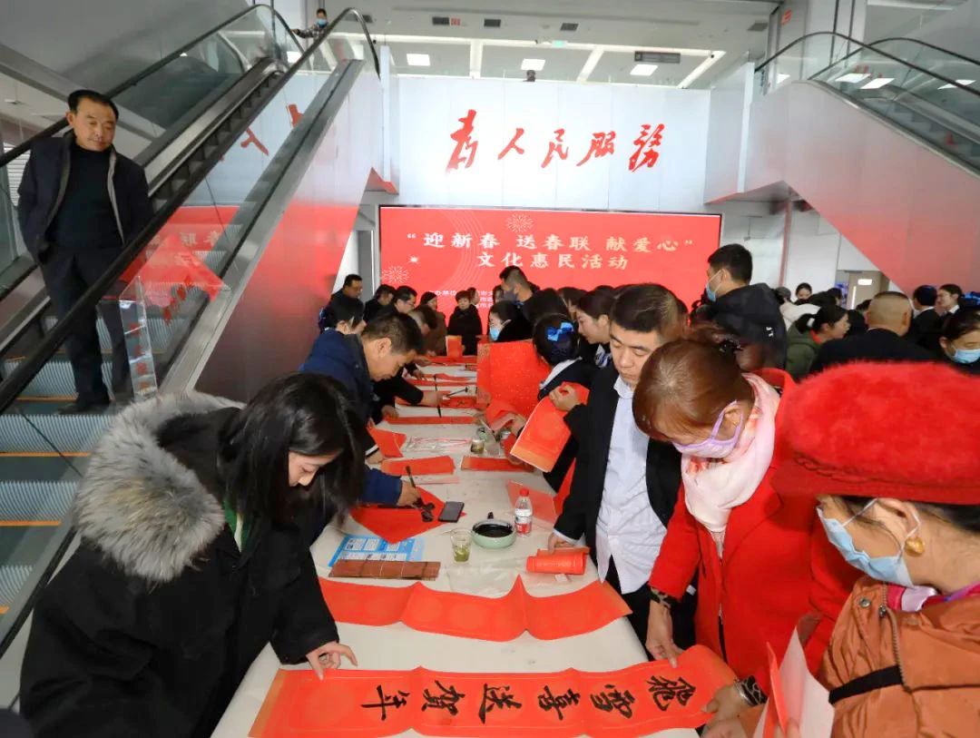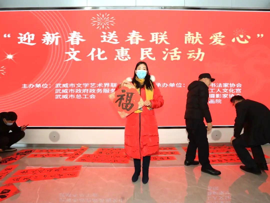 为深入学习宣传贯彻习近平文化思想,弘扬中华优秀传统文化,满足人民群众精神文化需求,营造春节前的浓厚氛围。1月26日,由武威市文学艺术界联合会、武威市政府政务服务中心、武威市总工会主办,武威市书法家协会、武威市摄影家协会、武威市工人文化宫、凉州书画院承办的“迎新春 送春联 献爱心”文艺志愿服务及文化惠民活动,在市政务服务中心一楼大厅举行。