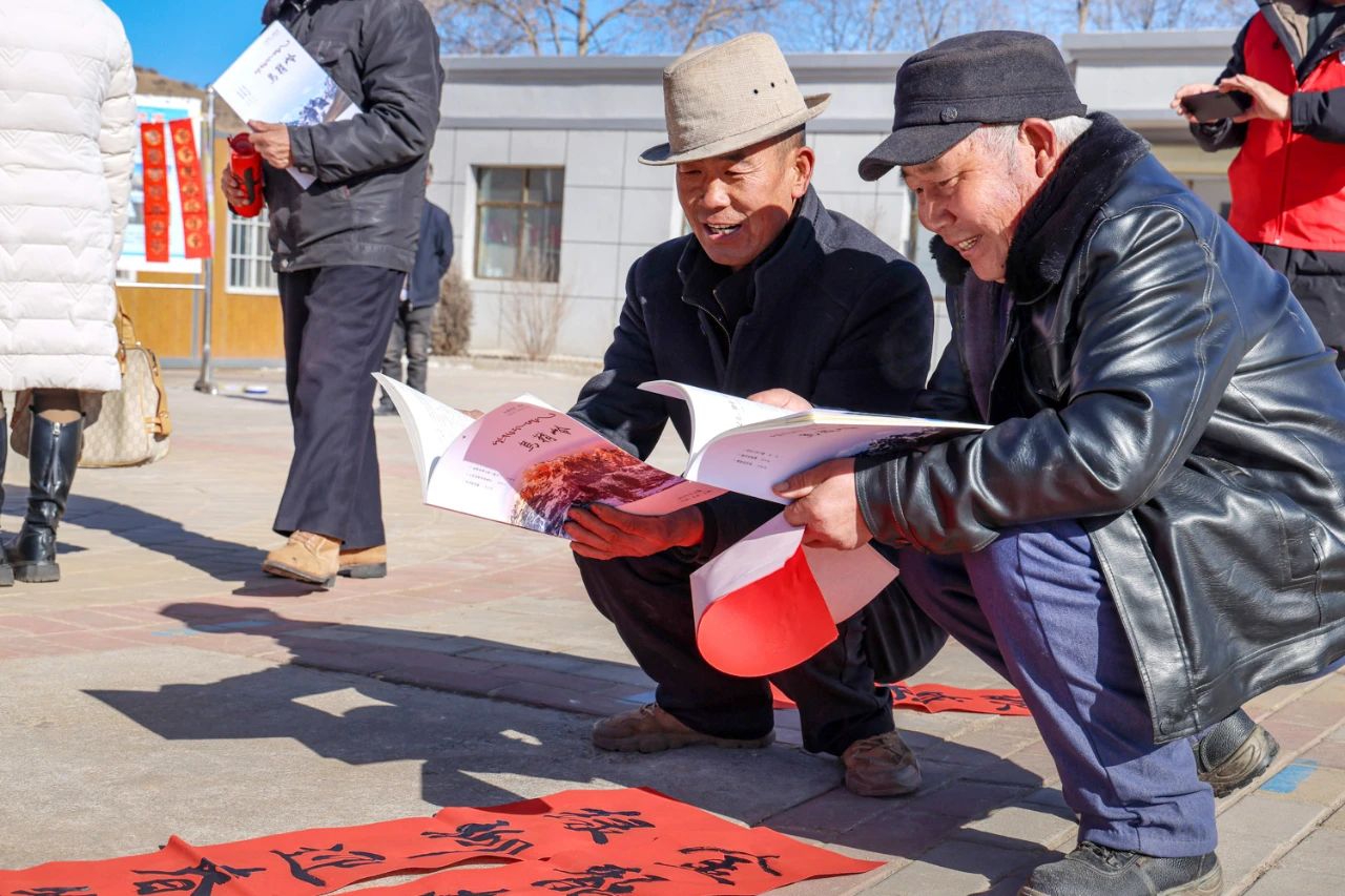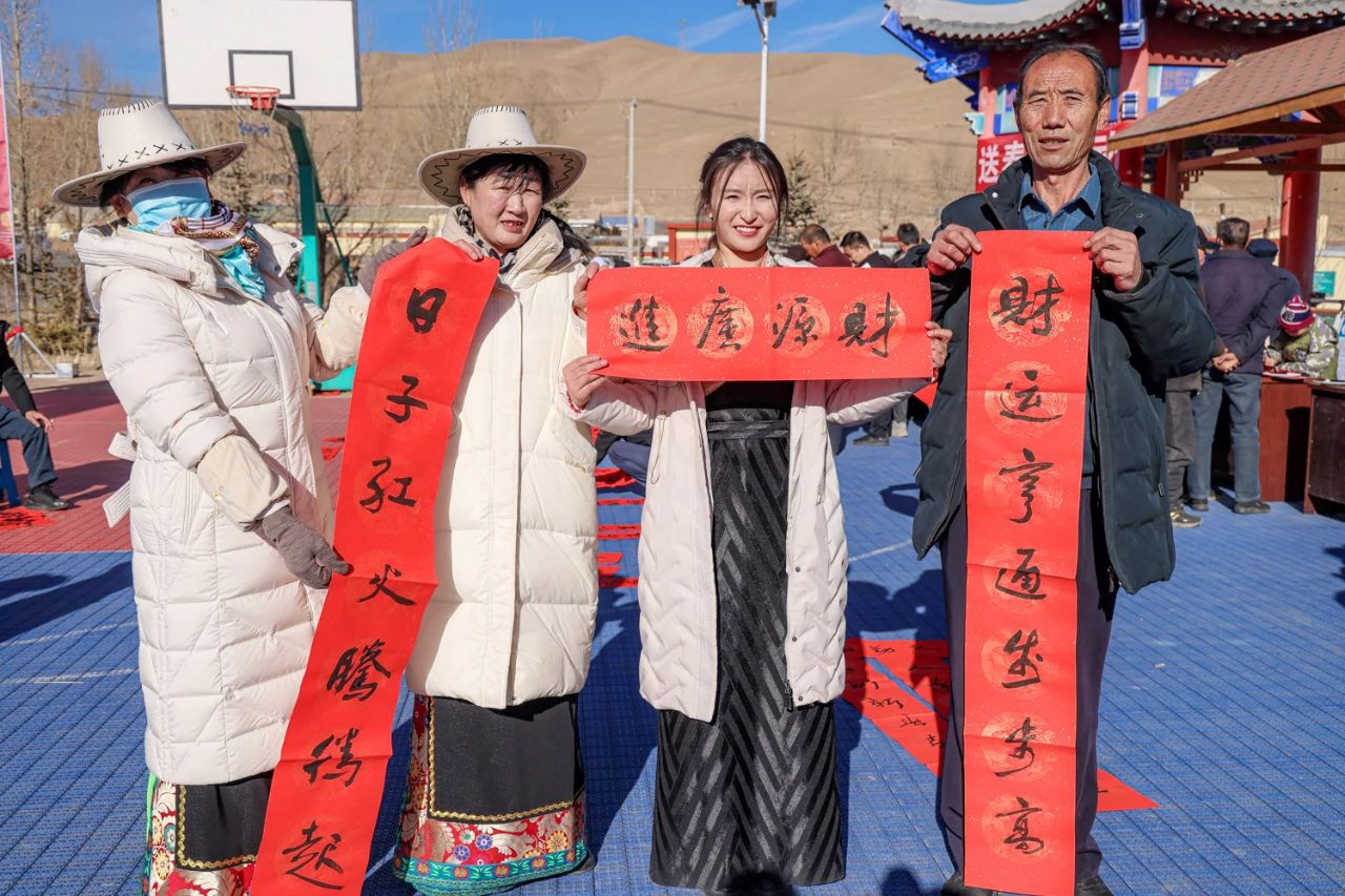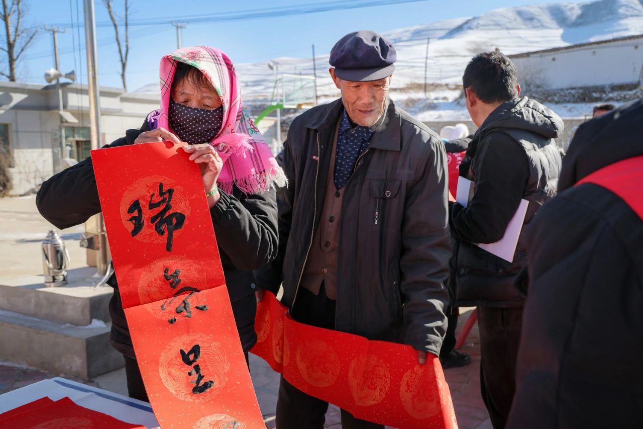 农牧民群众手捧着吉祥喜庆、翰墨飘香的春联,喜悦之情溢于言表,活动充满浓厚的节日气氛。在为期一周的活动中,共书写送出春联4800余副,福字5200余张。