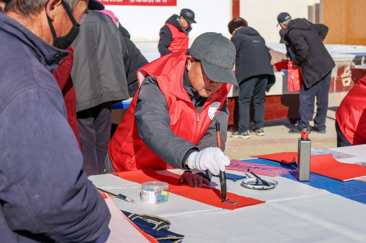 1月22日至2月1日,文艺志愿者小分队分赴西大滩镇、社区服务中心新时代文明实践所,打柴沟镇大湾村、哈溪镇团结村、学勤社区新时代文明实践站,为农牧民群众送上浓浓的年味和新春的祝福。活动现场,志愿者们挥毫泼墨,用心写下一副副春联、一张张福字,真情的话语,诚挚的祝福,将寄语之意陈于作品之中,把对新春的期望和祝福融入笔墨间。