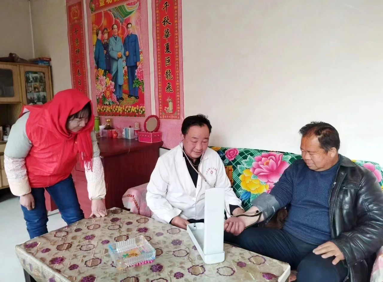 哈溪镇医疗健康志愿服务队志愿者上门为留守老人测血压。