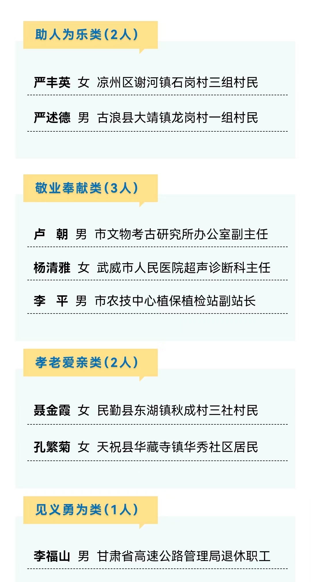 2024年第二季度“甘肃好人”武威市拟推荐人选公示
