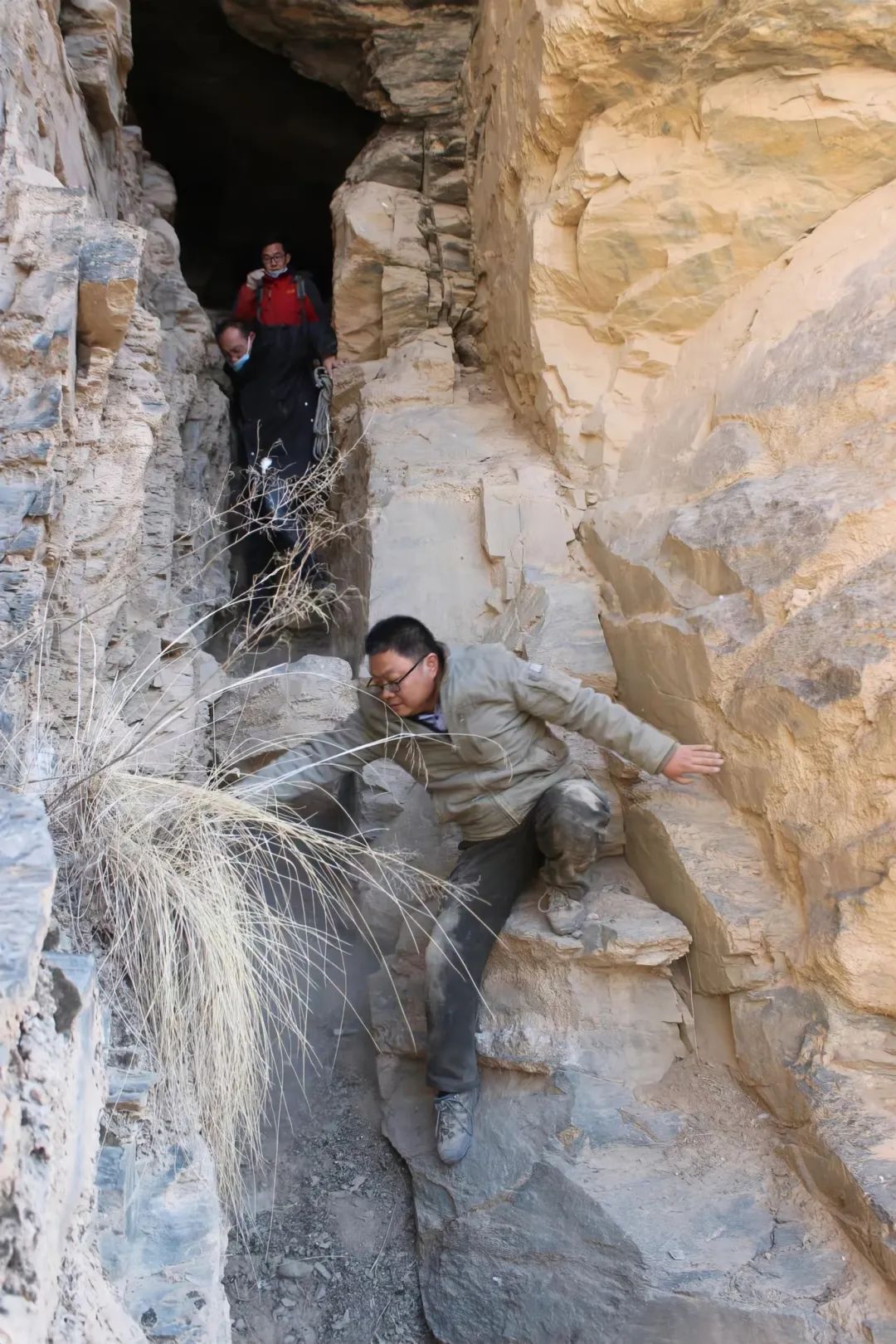 考古田野调查与发掘清理因多在野外开展,素以条件艰苦和环境恶劣闻名。在武威冰沟河和大水河流域开展大规模田野调查期间,卢朝同志与项目组其他成员历时三个月,顶烈日、战酷暑,翻山越岭、涉水渡河,完成了四百多平方公里田野调查任务,确定了二十三座唐代吐谷浑王族墓葬。2021年至2023年,卢朝同志随项目组每年有近七个月在野外发掘清理墓葬,春季身裹棉大衣吹着祁连山的冷风,清理地面进行布方;夏季有风吃土二两半、无风烈日当空晒,在闷热的墓室内刮面、出土和提取文物,且夏季天气多变,一旦起风必尘土飞扬,口鼻内尽是尘土,每次下工时宛如刚出土的兵马俑;深秋时,在阴冷的墓室内要进行拍照和测绘,冻得手指发麻;而且每次清理到墓室底部时,十数天都要在深达七八米甚至十几米深的墓坑内沿着梯子爬上爬下,稍有不慎就会跌落至墓坑底部,危及生命;此外,因土质松软时常还会出现土方坍塌,可瞬间将人完全压埋。面对种种困难和危险,卢朝同志从不退缩,吃苦不言苦,见险不畏险,坚持干好每天的工作。特别是2021年7月,卢朝同志在野外调查时不慎掉进雨水冲刷形成的深坑中,造成右臂骨折和擦伤,但他仍带伤每天按时上下工,从未因个人伤病耽误项目组的工作。