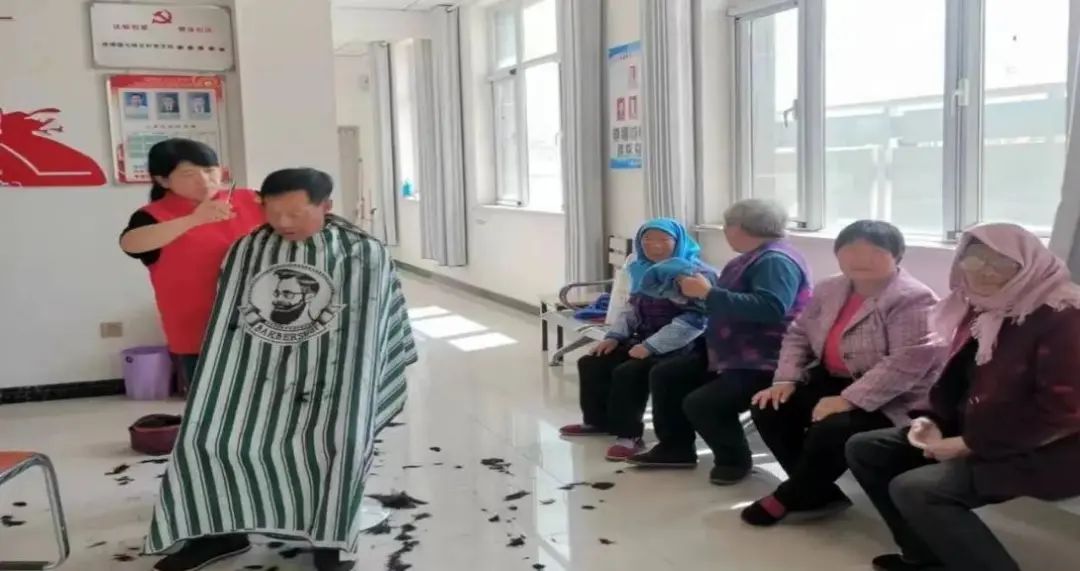 志愿者为老人理发