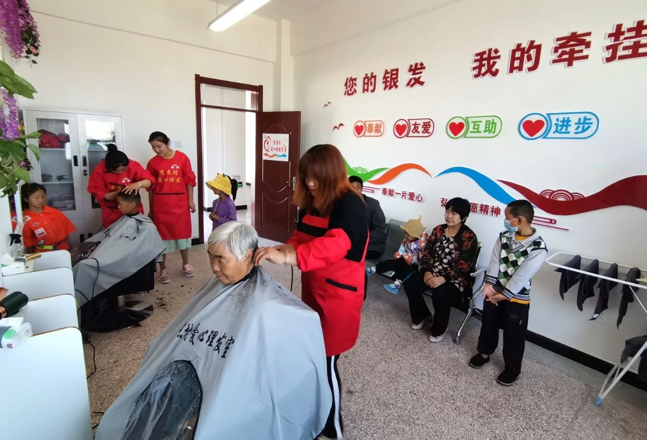 帮  关爱帮扶聚心。结合“一老一小一困”关爱服务行动,充分发挥村级妇联作用,组织妇女志愿者定期慰问和看望留守老人、留守儿童和残障人士,并为其清扫庭院卫生、清洗衣物、让他们感受到村级大家庭的温暖。同时设立“爱心理发室”,为不便外出的老人、学生和行动不便的残疾人开展理发服务,共开展爱心理发1048人次。设立秀杰村“爱心暑托班”,开展作业辅导等志愿服务104人次,解决农忙时节中小学生无人看管问题。