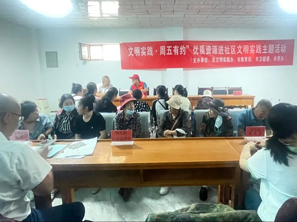 为广泛开展“文明实践我是行动者”主题活动,发挥党员干部带头作用,统筹市级各类优质资源,持续做好“十个100”优质资源下基层文明实践主题活动,满足群众精神文化需求,6月28日下午,“文明实践·周五有约”优质资源进社区暨古钟楼社区“流动办公进楼院 服务群众零距离”活动在古楼小区老年活动室开展。