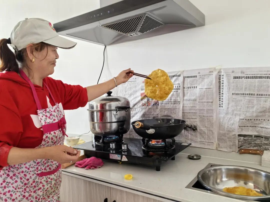 爱心食堂内工作人员在炸油饼