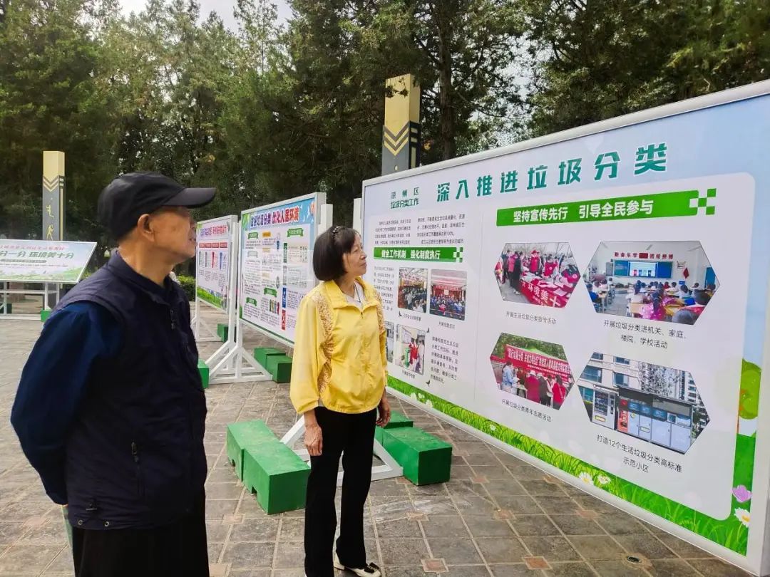 在西郊公园,内容新颖的垃圾分类展板吸引了市民驻足。哪些是可回收垃圾,哪些是不可回收垃圾,智能垃圾箱使用等相关内容一目了然,公园“微课堂”让市民在游园锻炼的同时,潜移默化地增长了环保意识。