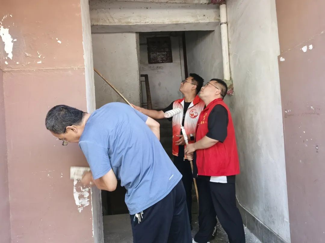 在农行家属院,社区自费购买腻子粉、乳胶漆等涂料、工具,工作人员不辞辛苦,纷纷化身“粉刷匠”,自主分工合作,认真进行粉刷墙面工作。