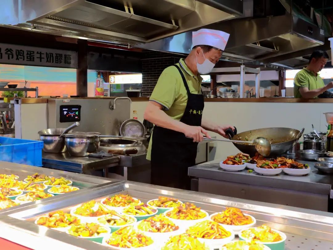 正值午饭时间,人社大厦食堂里饭香四溢,在出餐口显眼的位置张贴着“面多面少请提前告知”的提示语,就餐人员正有序排队,按需点餐取餐。“食堂对菜品初加工时,全部采取员工手工择菜的方式,降低食材边角料浪费,提高了利用率。”该食堂工作人员朱红梅介绍说,“食堂就餐人数不稳定,我们采取少量多次烹饪的方式,既保障了餐饮应量,又减少了饭菜剩余。”