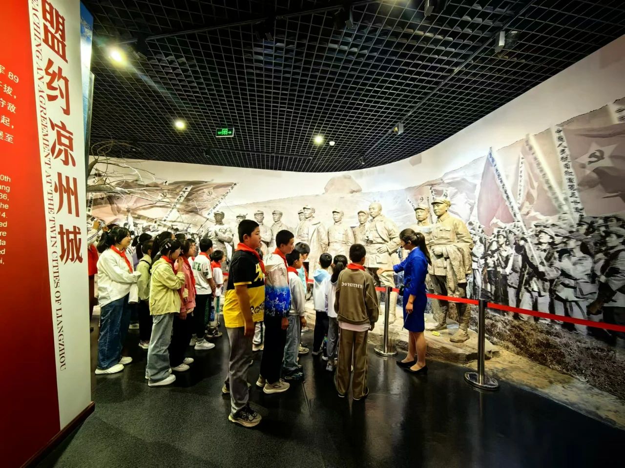 志愿者们组织孩子们赴古浪战役纪念馆参观学习,聆听西路军浴血奋战的英雄事迹,实地感受艰苦卓绝、硝烟纷飞的战争场面,引导学生铭记历史、传承红色基因,弘扬革命精神,激发学生的报国之志,培养民族自豪感、责任感和使命感。
