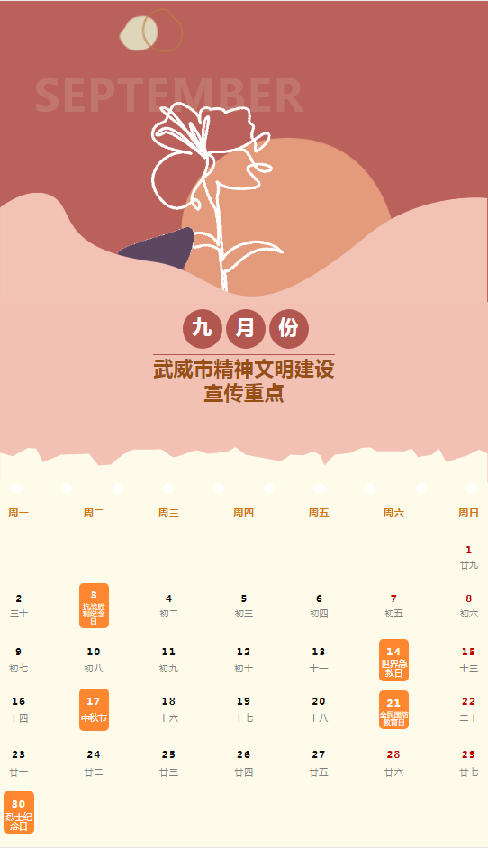 武威市九月份精神文明建设宣传重点来啦~
