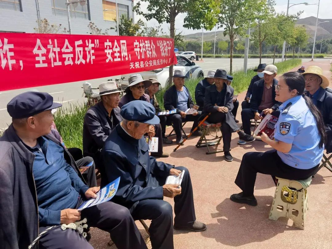 “爷爷奶奶们,你们要记住,天上不会掉馅饼,借您身份证、银行卡刷一下,就能领礼品的都是骗子”。宣传活动中,天祝县公安局防诈中心民警马成彪与辖区居民围坐在一起以群众身边事例为切入点,将反诈常识有效嵌入,把“书面语”变成“家常话”,让宣传既有“高度”,又有“温度”,更有“力度”。