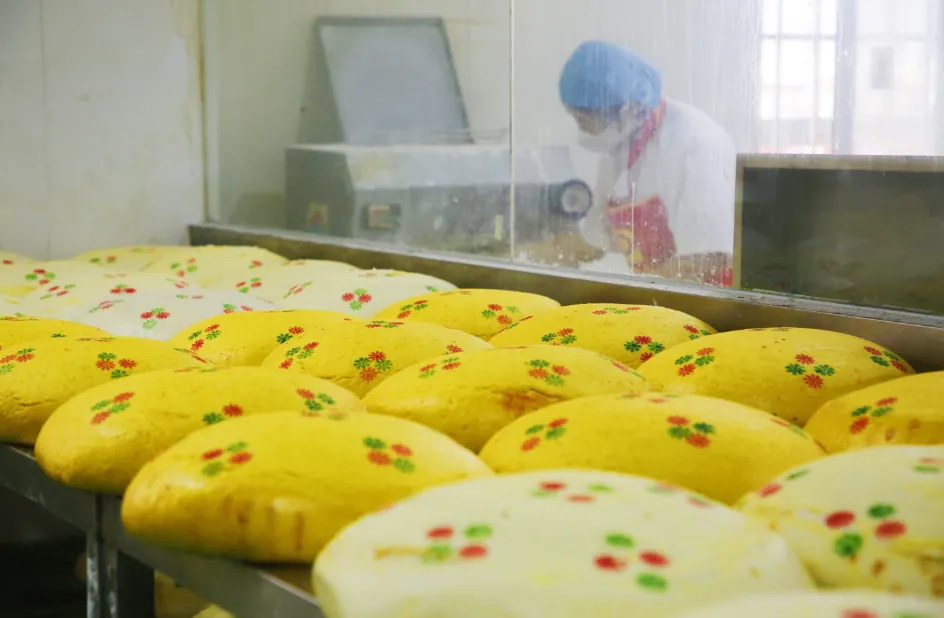 冒着锅气、酥软味香的月饼出锅了