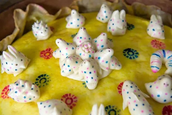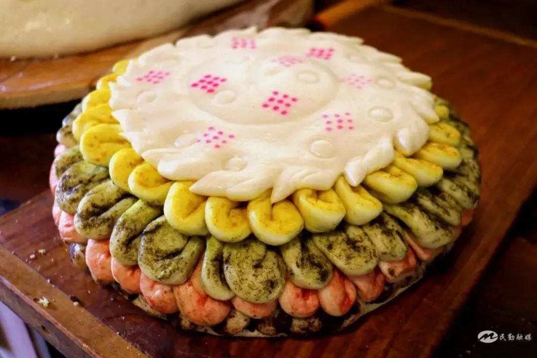 以面点做成的五彩“花瓣”层层叠叠