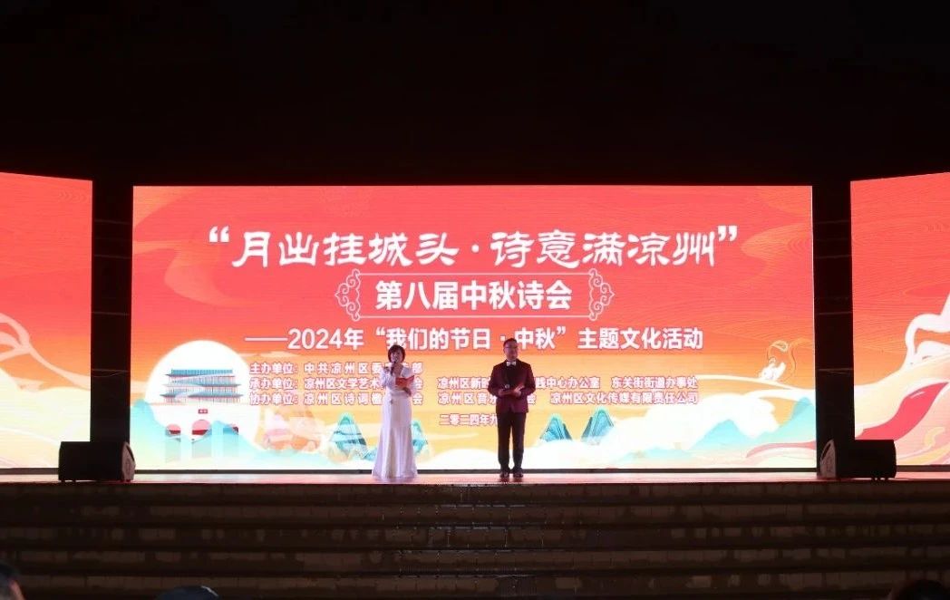 9月14日晚,凉州区举办“月出挂城头·诗意满凉州” 第八届中秋诗会。活动以“月出挂城头·诗意满凉州” 为主题,来自各行各业的文艺工作者各展所长,通过诗歌朗诵、歌舞表演及器乐合奏等多种形式,汇聚民间文艺精华,为市民们呈现了一场精彩纷呈的文化盛宴,共庆中秋佳节,传递了浓浓的节日氛围与文化情怀。