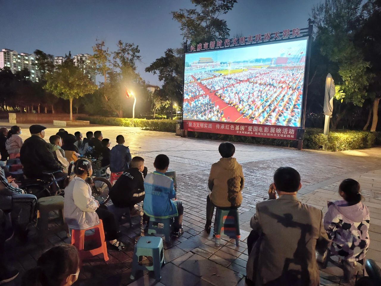 夜幕降临,光影交错,西郊公园中心广场人头攒动,市民群众聚拢而来,等待着“露天影院”的开启。