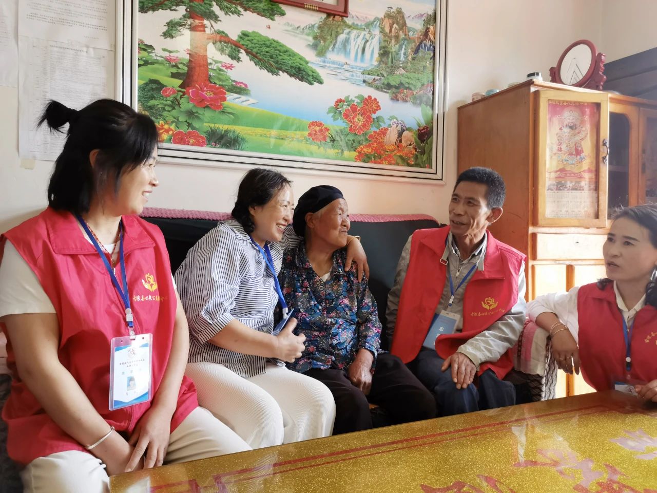 ▲“甘肃好人”王兴全陪空巢老人聊天