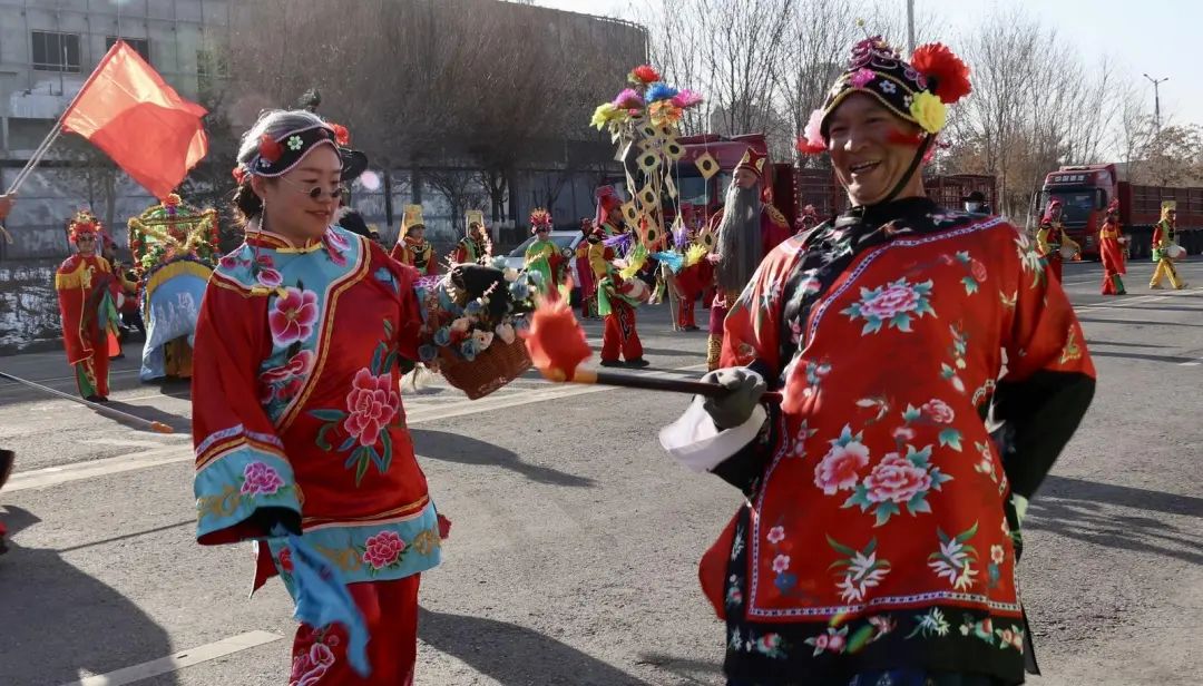 虽是数九寒天,但社火演员们个个热情高涨、精神焕发。一举手、一投足、一个身段、一个眼神都带着纯正的秧歌“范儿”。他们伴随着鼓点,“舞龙”翻滚,“秧歌”跳跃,整齐的舞步,不断变换的队形和充满激情的表演,勾勒出一幅热闹非凡的社火排练场景。