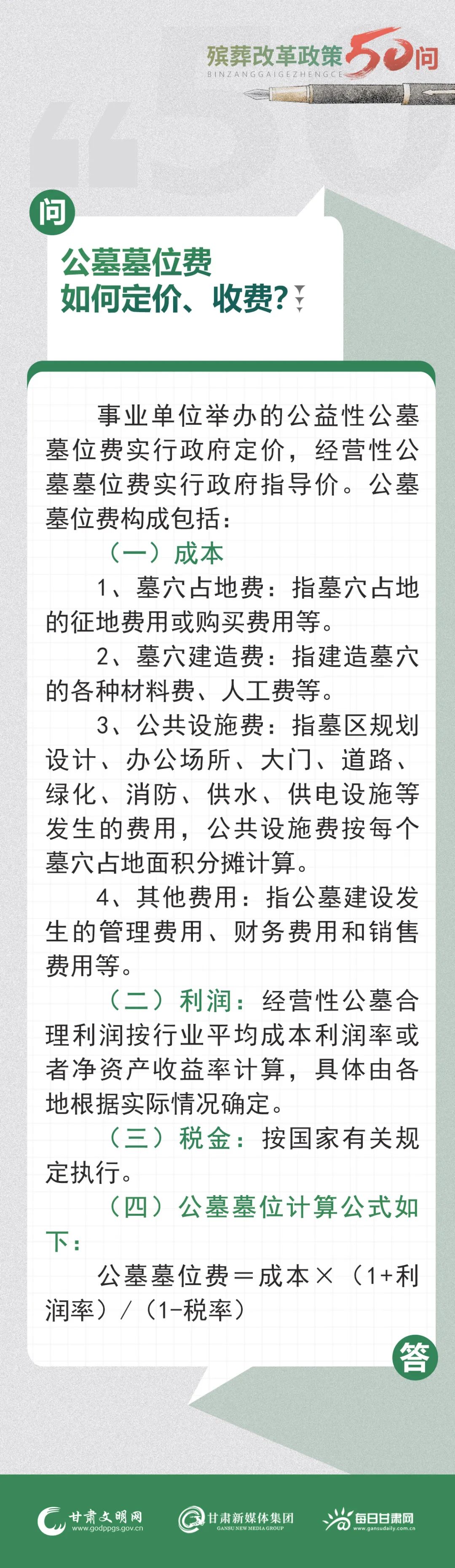 甘肃省殡葬改革政策50问 | 第24问:​公墓墓位费如何定价、收费?