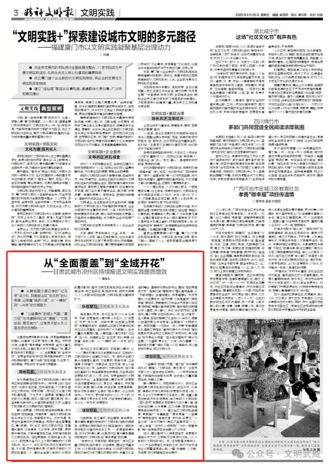 《精神文明报》刊登丨从“全面覆盖”到“全域开花”——甘肃武威市凉州区持续推进文明实践提质增效