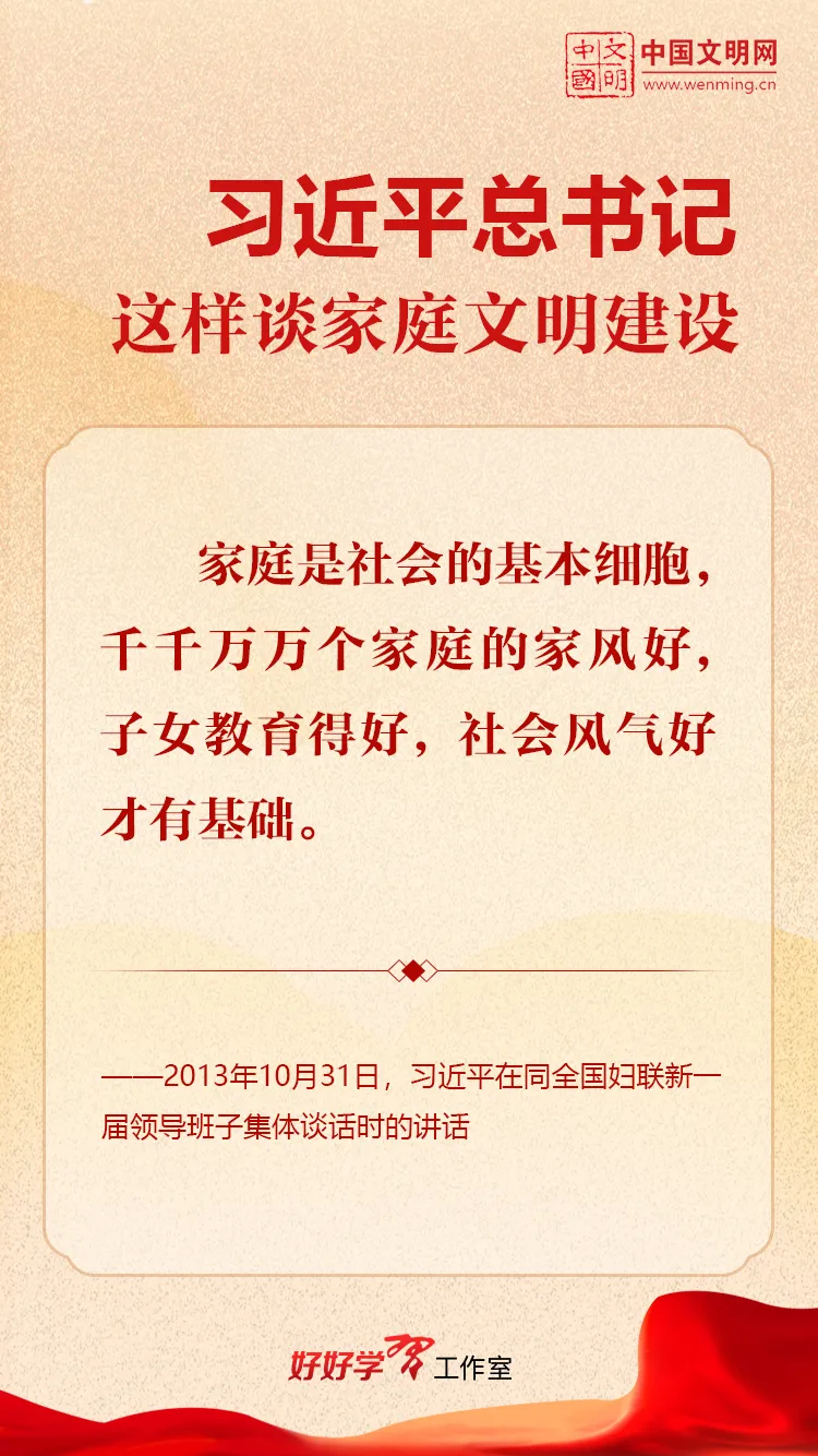 家庭是社会的基本细胞,家庭的前途命运同国家和民族的前途命运紧密相连。党的十八大以来,习近平总书记高度重视家庭文明建设,让我们一起学习习近平总书记关于家庭文明建设的重要论述,推动形成社会主义家庭文明新风尚。