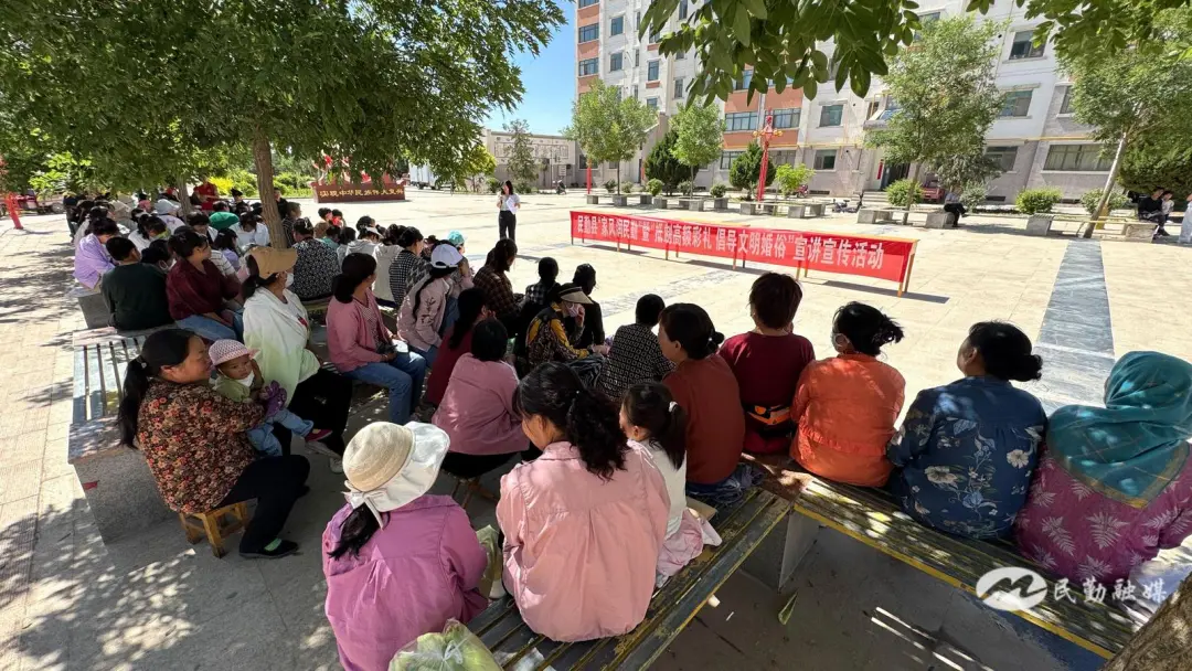 7月9日,民勤县“家风润民勤”暨“抵制高额彩礼 倡导文明婚俗”宣讲活动走进东坝镇拐湾社区,120余名村民围坐长凳,聆听文明新风宣讲。