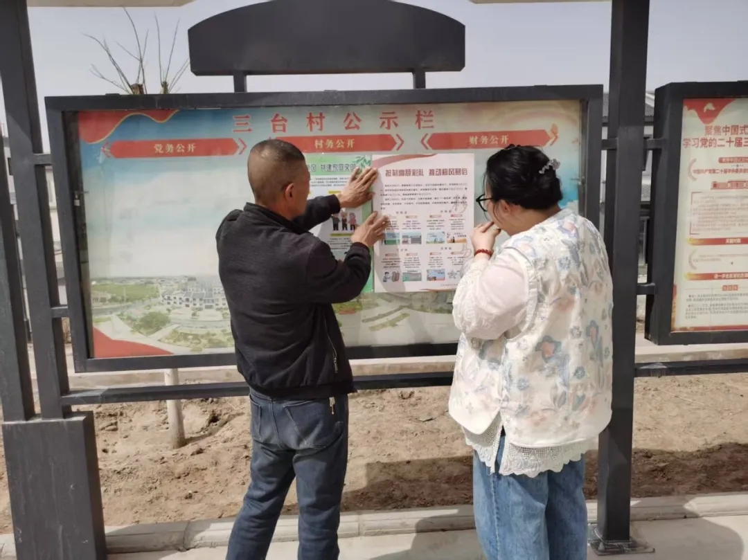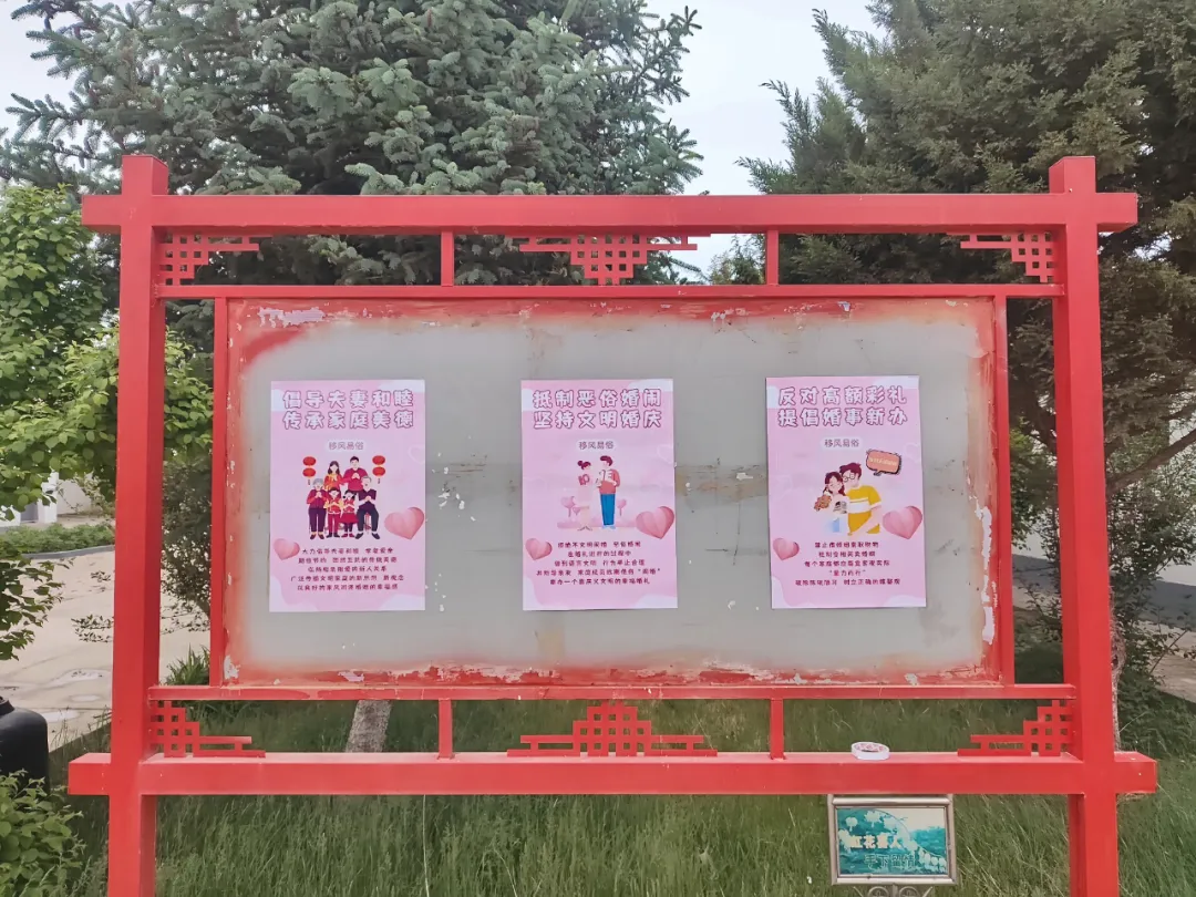 组建多支移风易俗志愿宣讲队伍,走进村庄院落、文化广场、田间地头开展“移风易俗宣讲会”“文明新风进万家”等丰富多彩的宣传活动,面对面传递文明婚俗理念。同时,积极拓展宣传矩阵,线上通过微信公众号、微信群推送倡议书、宣传海报,线下利用宣传栏、横幅、电子显示屏等载体,广泛宣传抵制高额彩礼,倡导文明婚俗,让文明新风深入人心。